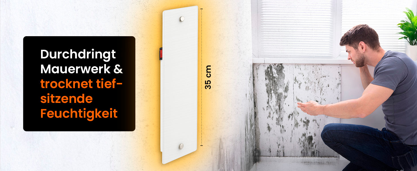 Die neue Anti-Schimmel-Heizung mit edler Glasfront kombiniert modernes Design mit maximaler Wirkung: Die Glasfläche sorgt nicht nur für eine elegante Optik, sondern verteilt die Wärme besonders gleichmäßig auf der Wand. So wird die Wand optimal getrocknet, Schimmelpilzen die Lebensgrundlage entzogen und das Problem direkt an der Ursache bekämpft.