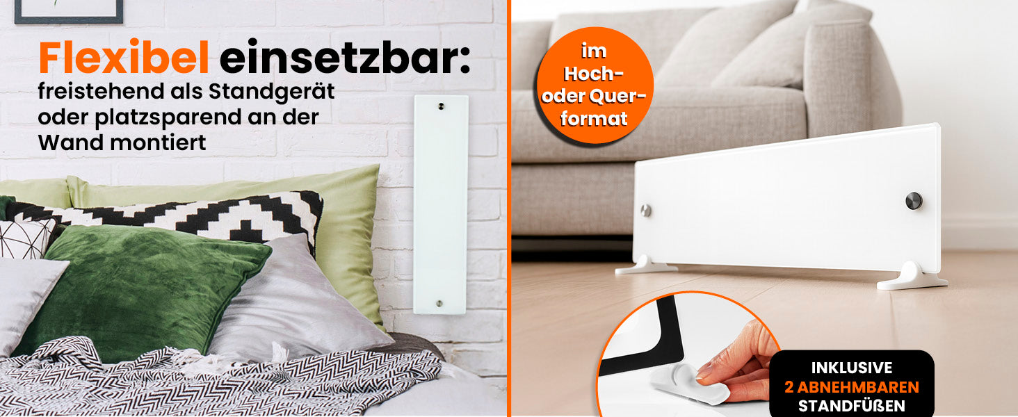 Die neue Anti-Schimmel-Heizung mit edler Glasfront vereint modernes Design mit effizienter Schimmelbekämpfung. Durch die Glasfläche wird die Wärme besonders gleichmäßig auf die Wand verteilt, wodurch Feuchtigkeit effektiv reduziert und Schimmel direkt an seiner Ursache bekämpft wird. Die Heizung kann flexibel per Standfuß aufgestellt oder platzsparend an der Wand montiert werden. Bald wird zudem ein zusätzlich erhältliches Kabel verfügbar sein, mit dem sich mehrere Heizungen im Kettensystem verbinden lassen – so können mehrere Geräte über nur einen Netzstecker betrieben werden. Mit ihrer kompakten Bauweise, einfacher An-/Aus-Bedienung und hochwertigen Materialien aus Kunststoff und Glas ist sie die ideale Lösung für alle, die ihre Wände nachhaltig trocken halten und ihr Zuhause schimmelfrei gestalten möchten.